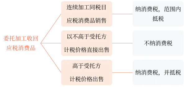 (四)委托加工的應(yīng)稅消費品在提取貨物時已由受托方代收代繳了消費稅,委托方收回后以不高于受托方計稅價格直接銷售的,不再繳納消費稅。高于受托方計稅價格銷售的,需計算繳納消費稅,并可抵扣該消費品委托加工環(huán)節(jié)被代收的消費稅。