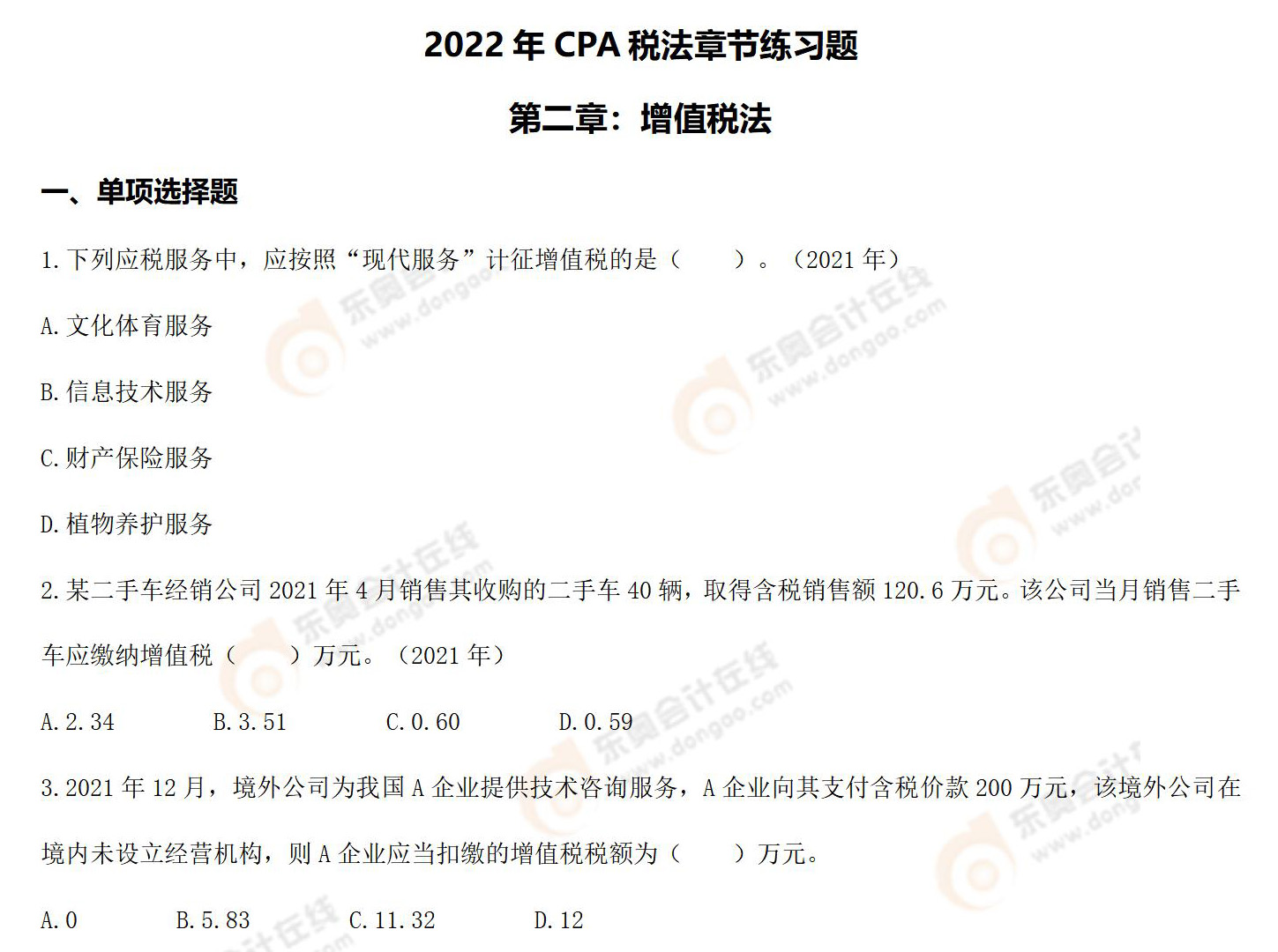 注:章節(jié)練習(xí)題出自東奧名師劉穎老師的2022年《稅法》基礎(chǔ)精講班課程講義