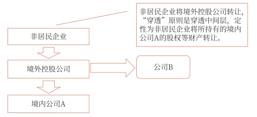 1.非居民企業(yè)通過實施不具有合理商業(yè)目的的安排,間接轉(zhuǎn)讓中國居民企業(yè)股權(quán)等財產(chǎn),規(guī)避企業(yè)所得稅納稅義務(wù)的,應(yīng)按照《企業(yè)所得稅法》的有關(guān)規(guī)定,重新定性該間接轉(zhuǎn)讓交易,確認(rèn)為直接轉(zhuǎn)讓中國居民企業(yè)股權(quán)等財產(chǎn)。