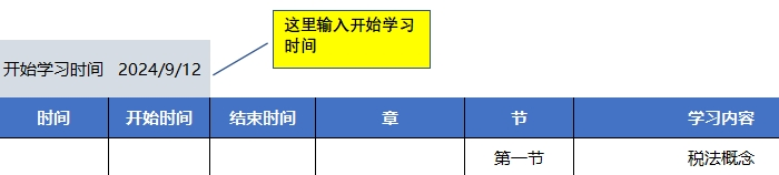 選中學(xué)習(xí)計(jì)劃表后,回到表格最上方,在灰框位置輸入起始學(xué)習(xí)時(shí)間,生成學(xué)習(xí)計(jì)劃。