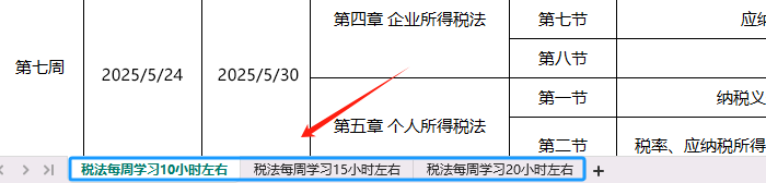 學(xué)習(xí)計(jì)劃表根據(jù)每周學(xué)習(xí)該科目的時(shí)長劃分為三種情況,分別為“稅法每周學(xué)習(xí)10小時(shí)左右”、“稅法每周學(xué)習(xí)15小時(shí)左右”和“稅法每周學(xué)習(xí)20小時(shí)左右”,考生請根據(jù)自身實(shí)際情況,選擇對應(yīng)表格。
