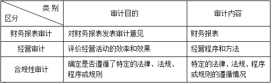 注冊(cè)會(huì)計(jì)師審計(jì)是一種有償?shù)奈袑徲?jì),按照接受委托目的和內(nèi)容,注冊(cè)會(huì)計(jì)師審計(jì)可分為財(cái)務(wù)報(bào)表審計(jì)、經(jīng)營審計(jì)和合規(guī)性審計(jì),三者的區(qū)別見下表: