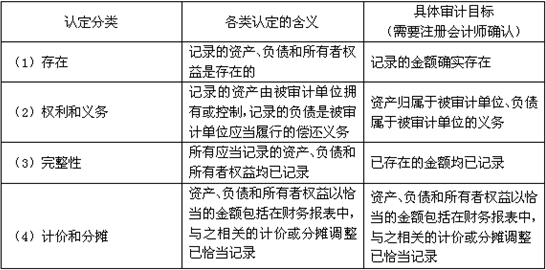 認(rèn)定與財(cái)務(wù)報(bào)表各項(xiàng)目的具體審計(jì)目標(biāo)密切相關(guān),注冊會計(jì)師的基本職責(zé)就是確定被審計(jì)單位管理層對其財(cái)務(wù)報(bào)表的認(rèn)定是否恰當(dāng)。