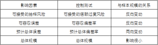 注冊會計師在控制測試中確定的樣本規(guī)模受到以下因素的影響,如下表: