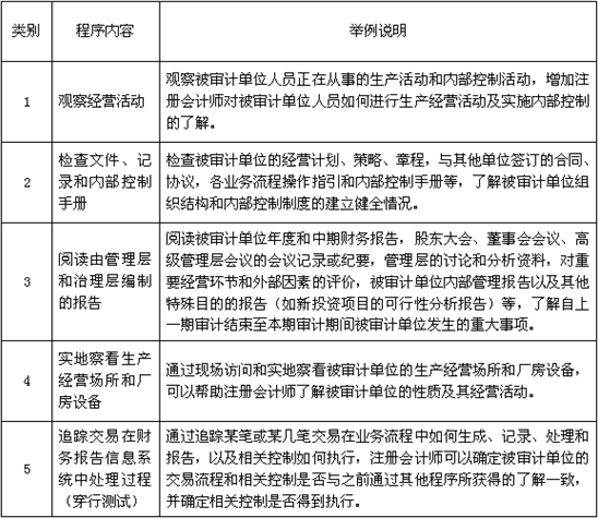 觀察和檢査程序可以支持對管理層和其他相關人員的詢問結果,并可以提供有關被審計單位及其環(huán)境的信息,具體內容如下表: