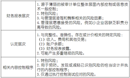 2.結(jié)合對擬測試的相關(guān)控制的考慮,將識別出的風(fēng)險與認定層次可能發(fā)生錯報的領(lǐng)域相聯(lián)系;