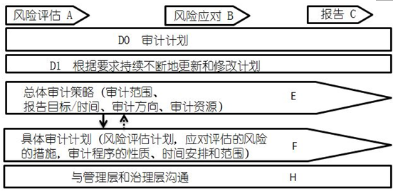 1.審計(jì)計(jì)劃分為兩個(gè)層次,總體審計(jì)策略(圖中英文字母E,后同)和具體審計(jì)計(jì)劃(F)。