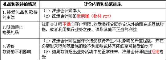 本部分內容請大家從接受禮品和款待的主體(比如是注冊會計師本人還是其近親屬或與其存在密切關系的人員),注冊會計師行業(yè)禁止接受禮品的情形,以及如果在實際執(zhí)業(yè)過程中遇到客戶的款待時如何判斷對職業(yè)道德基本原則或對獨立性的影響。