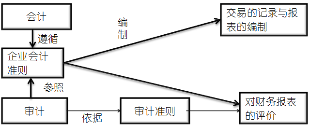 圖1-3 會計、審計與企業(yè)會計準(zhǔn)則的關(guān)系