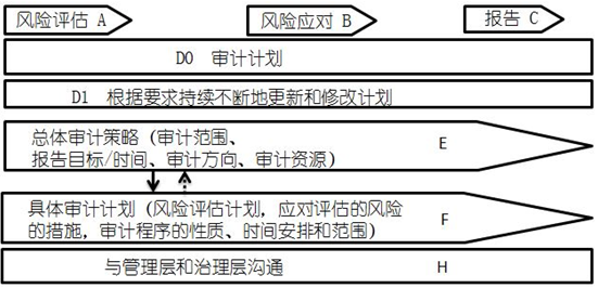 1.審計(jì)計(jì)劃分為兩個(gè)層次,總體審計(jì)策略(圖中英文字母E,后同)和具體審計(jì)計(jì)劃(F)。
