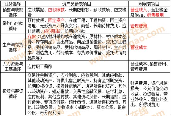 一、 業(yè)務(wù)循環(huán)與主要財(cái)務(wù)報(bào)表項(xiàng)目對照表