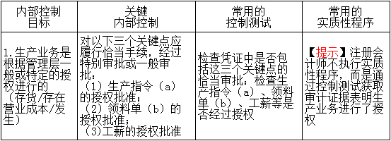 【高頻考點(diǎn)】:成本會(huì)計(jì)制度的內(nèi)部控制目標(biāo)、關(guān)鍵內(nèi)部控制和審計(jì)測試一覽表