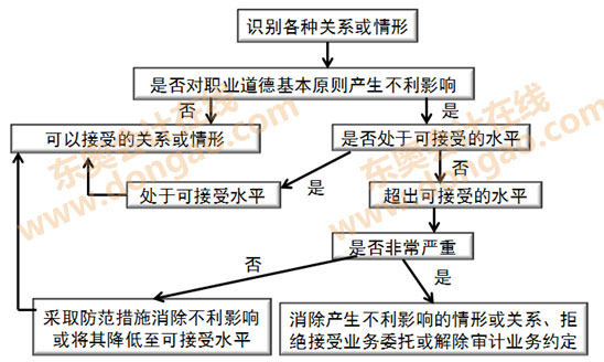 首先,識別對職業(yè)道德基本原則產(chǎn)生不利影響的各種關(guān)系或情形;