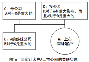 對(duì)于圖16所示的審計(jì)客戶A上市公司,會(huì)計(jì)師事務(wù)所一般不得向B、C、D等關(guān)聯(lián)實(shí)體提供受限制的非鑒證服務(wù)。