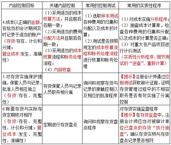 綜合題易考點:成本會計制度的控制目標、關(guān)鍵內(nèi)部控制和審計測試一覽表