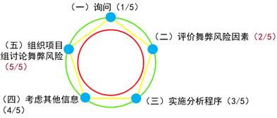 針對(duì)舞弊的風(fēng)險(xiǎn)評(píng)估程序和相關(guān)活動(dòng)需要考慮以下五個(gè)方面,如圖所示。