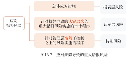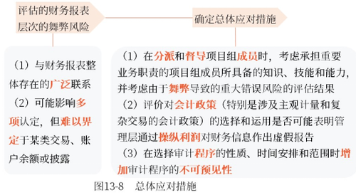 針對評估的舞弊導(dǎo)致的財務(wù)報表層次重大錯報風(fēng)險,注冊會計師的總體應(yīng)對措施,如圖13-8所示。