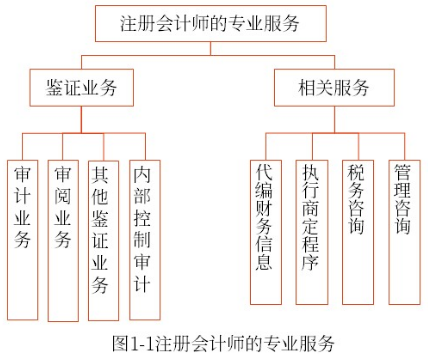 注冊(cè)會(huì)計(jì)師的專業(yè)服務(wù)包括鑒證業(yè)務(wù)和相關(guān)服務(wù),如圖1-1所示。