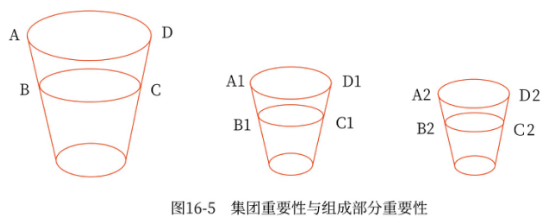 組成部分重要性(如圖16-5中的A1、A2)應(yīng)當(dāng)?shù)陀诩瘓F(tuán)財(cái)務(wù)報(bào)表整體的重要性(如圖16-5中的A),A1<A,A2<A。