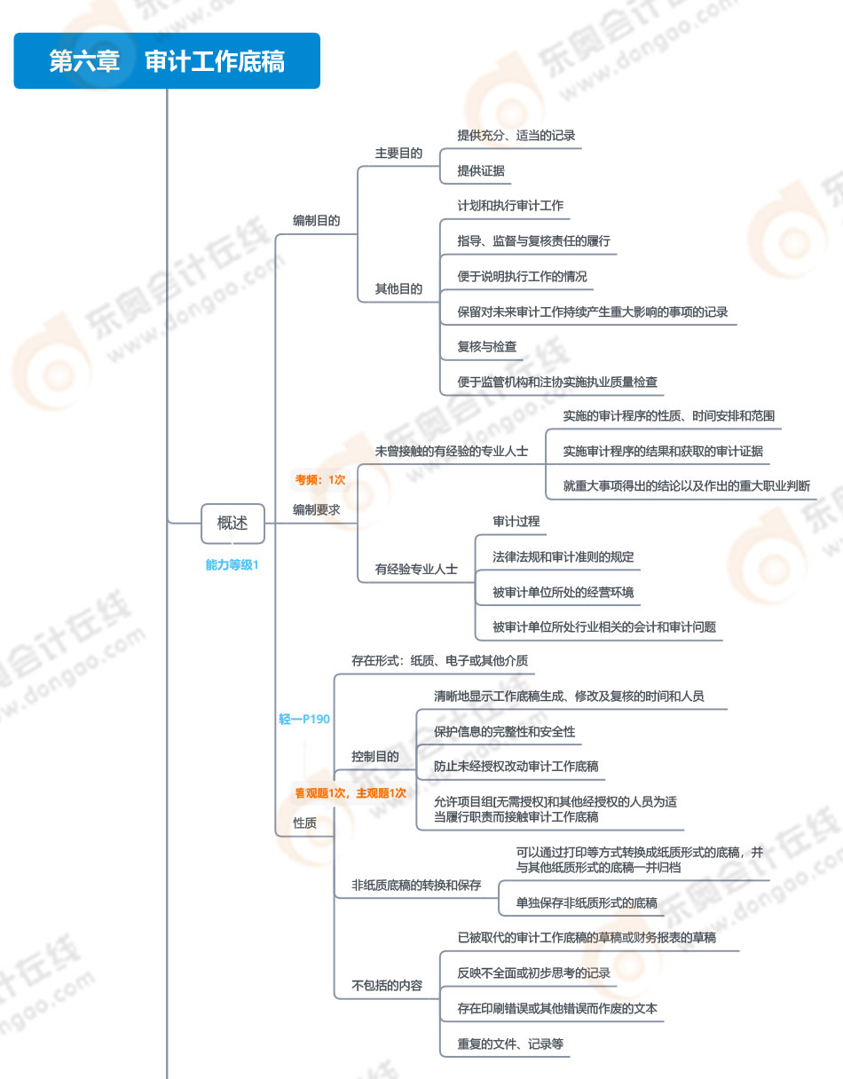 2023年注會(huì)審計(jì)思維導(dǎo)圖:第六章審計(jì)工作底稿