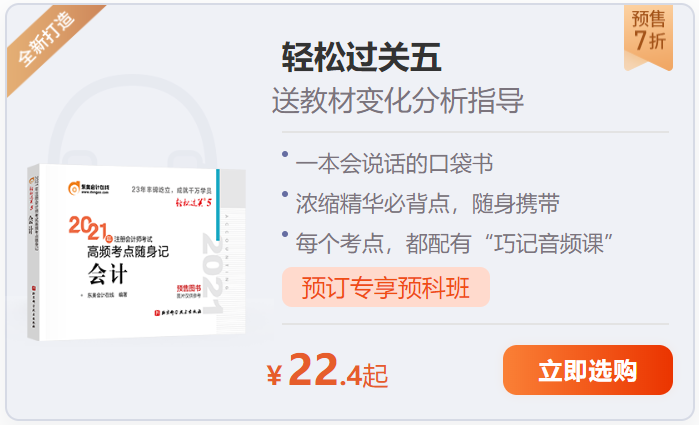 更多注冊(cè)會(huì)計(jì)師輔導(dǎo)教材——《輕松過(guò)關(guān)?》系列輔導(dǎo)書的優(yōu)惠活動(dòng),請(qǐng)戳我了解>>>