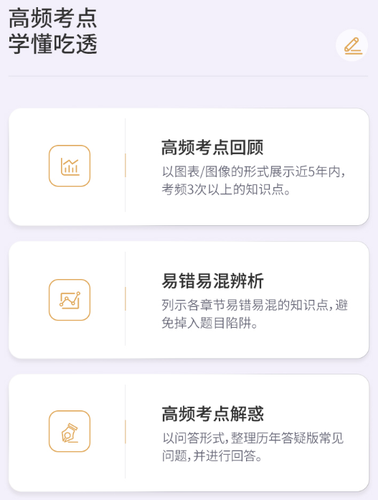 以圖表或圖像的形式展示近5年3次以上的高頻考點(diǎn);羅列出各章節(jié)中的易錯(cuò)、易混知識(shí)點(diǎn)內(nèi)容,幫助考生避雷;總結(jié)整理答疑板中常見問(wèn)題,以問(wèn)答形式進(jìn)行羅列回答。