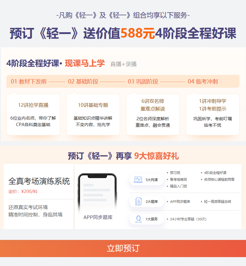 組合攻略:《輕一》夯實基礎(chǔ),掌握知識點脈絡(luò),利用《輕二》進行練習(xí),查缺補漏,再搭配《輕三》進行真題演練,沖刺得分,備考過程中結(jié)合《學(xué)霸筆記》對知識點進行總結(jié),讓考生更好消化知識點和提高注冊會計師考試的應(yīng)試能力。點擊了解>>>