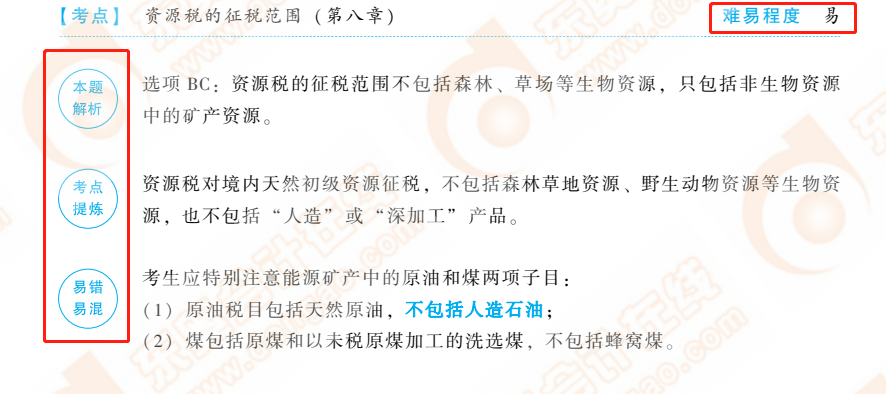 題目解析中清楚標(biāo)注難易程度,每個(gè)考點(diǎn)明確對(duì)應(yīng)知識(shí)點(diǎn)內(nèi)容,解析題目,提煉考點(diǎn)、易錯(cuò)易混標(biāo)注,看懂一道題比會(huì)做一道題價(jià)值更高,多了解一道題,考試就多一分把握。