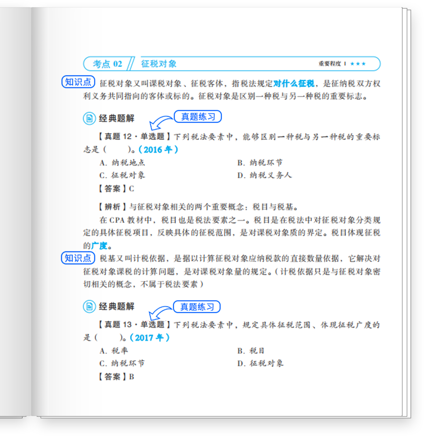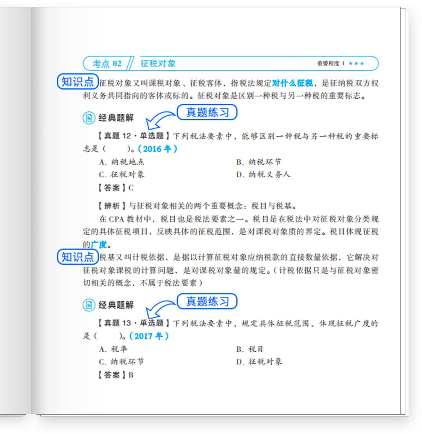 以注會《稅法》科目的《輕一》為例,可以看到在新增知識點上,不但有針對新增點的解釋說明,還有利用圖表等形式進行了多種方式的對比解讀,讓新增的內(nèi)容更加明朗清晰?!爸匦陆庾x、全新展示”是《輕一》對“新”的一種定義。