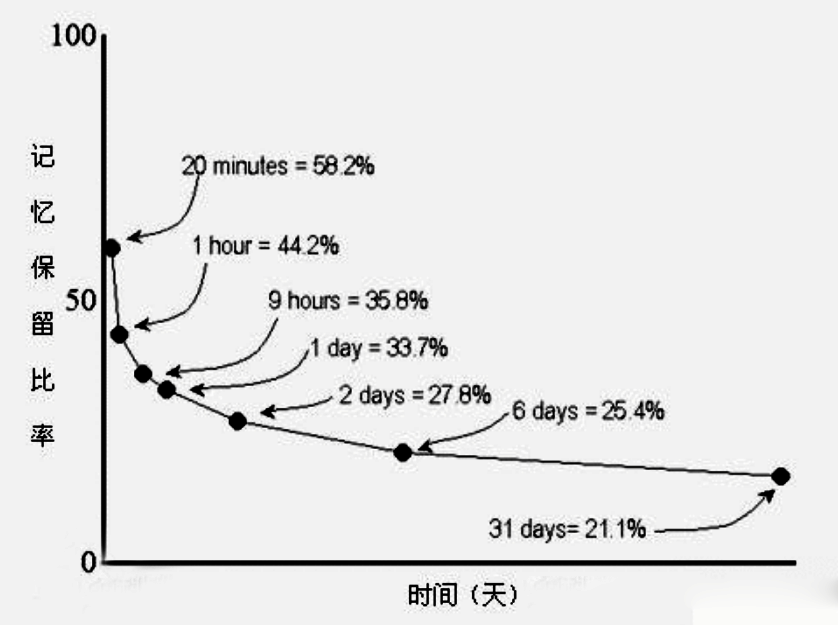 (“艾賓浩斯遺忘曲線”圖片源自:百度百科)