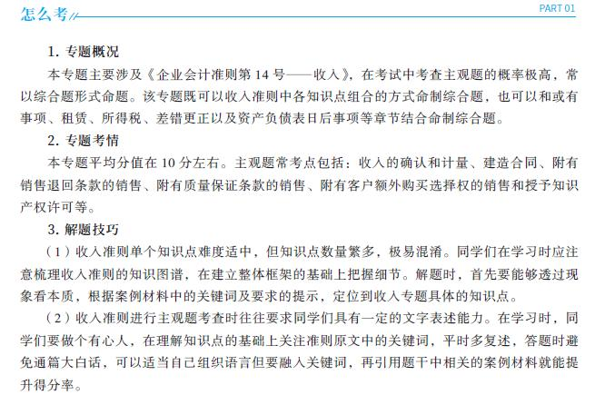 注會(huì)考試的大題也就是主觀題,包括計(jì)算分析題、案例題、綜合題等題型,不同于選擇題可以直接選擇選項(xiàng),這類題需要準(zhǔn)確輸出(敲字),而且往往綜合性較強(qiáng),會(huì)聯(lián)系不同章的考點(diǎn)關(guān)聯(lián)考查,因此也是絕大多數(shù)考生的失分重災(zāi)區(qū)。按專題維度分區(qū),可以融會(huì)貫通考點(diǎn),也可以有針對性的根據(jù)自己的薄弱點(diǎn)集中練習(xí)。