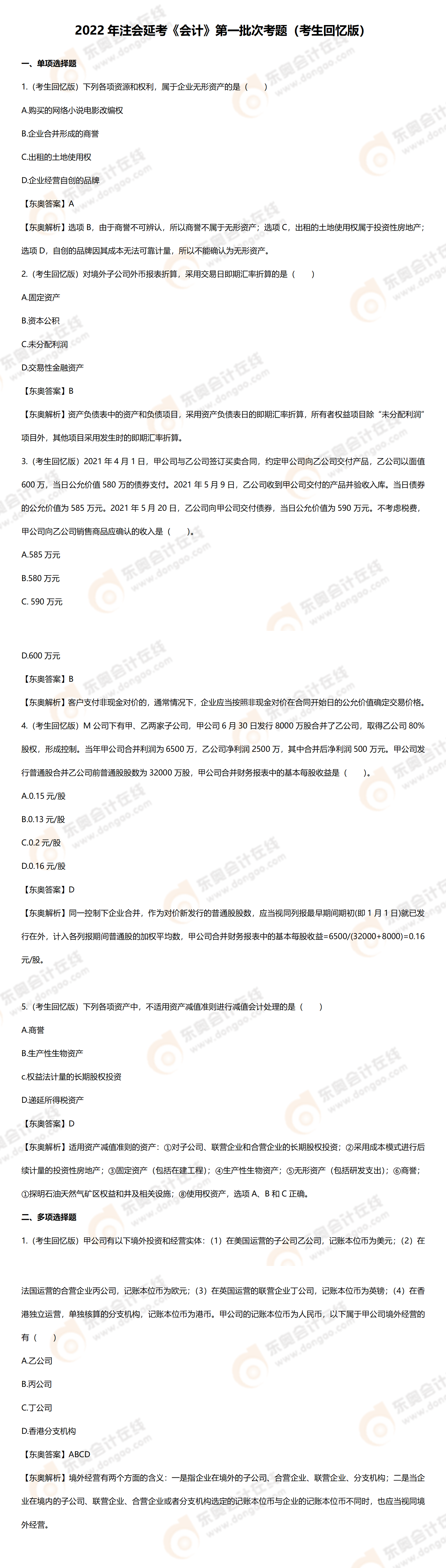 2022年注會延考地區(qū)《會計》考題及參考答案第一批次(考生回憶版)