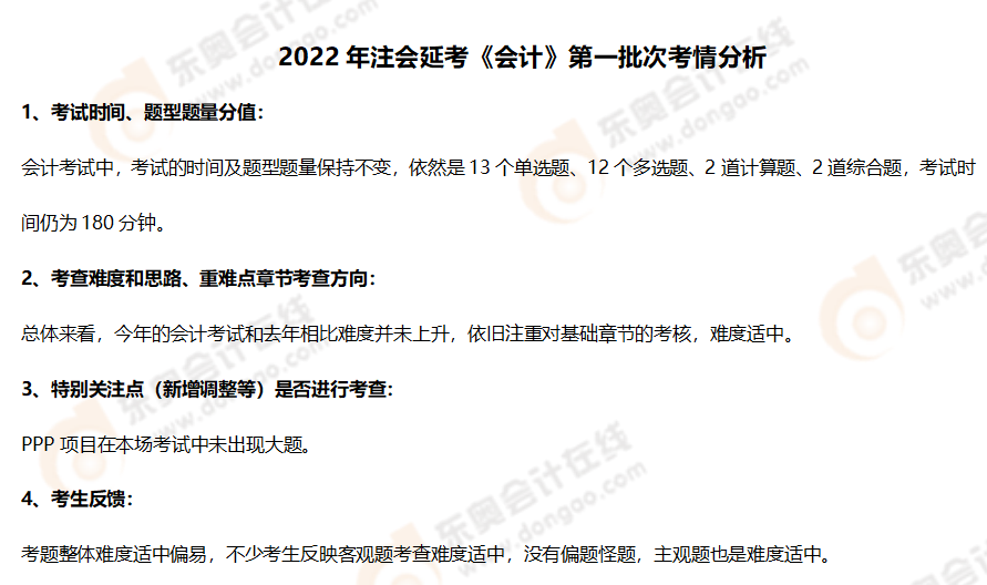 2022年注會延考《會計》第一批次考點總結(jié)及考情分析