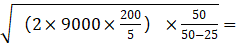 本題屬于“存貨陸續(xù)供應(yīng)和使用模型”,每日產(chǎn)量P為50件,每日使用量d=9000/360=25(件),代入公式可知:經(jīng)濟(jì)生產(chǎn)批量=