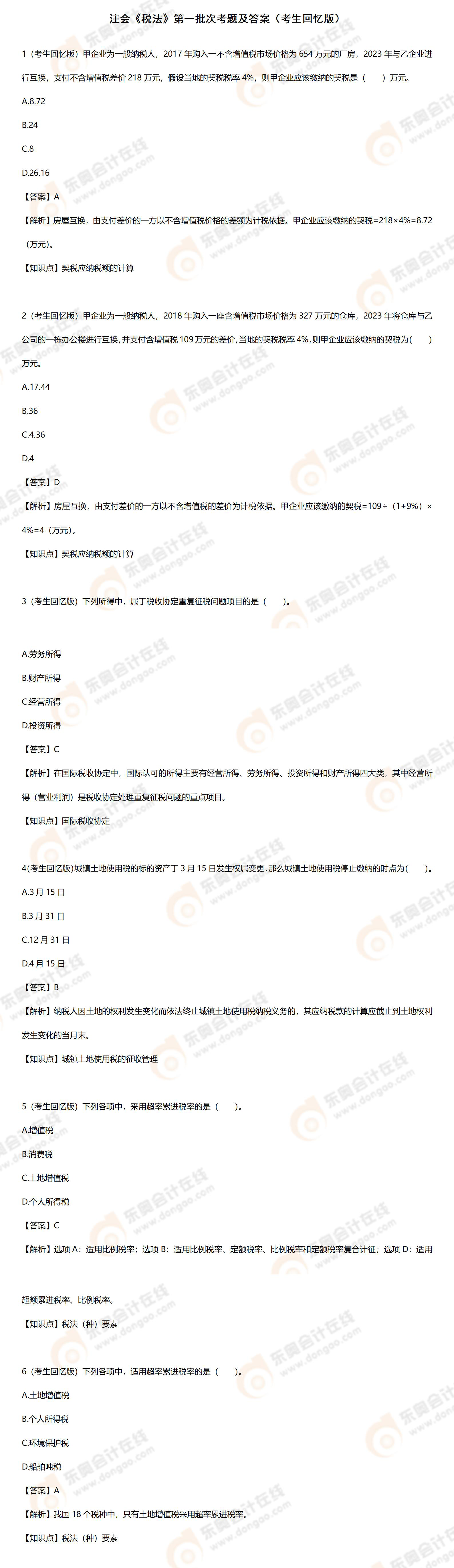 2024年注冊會計(jì)師稅法第一批次考題及答案解析(考生回憶版)