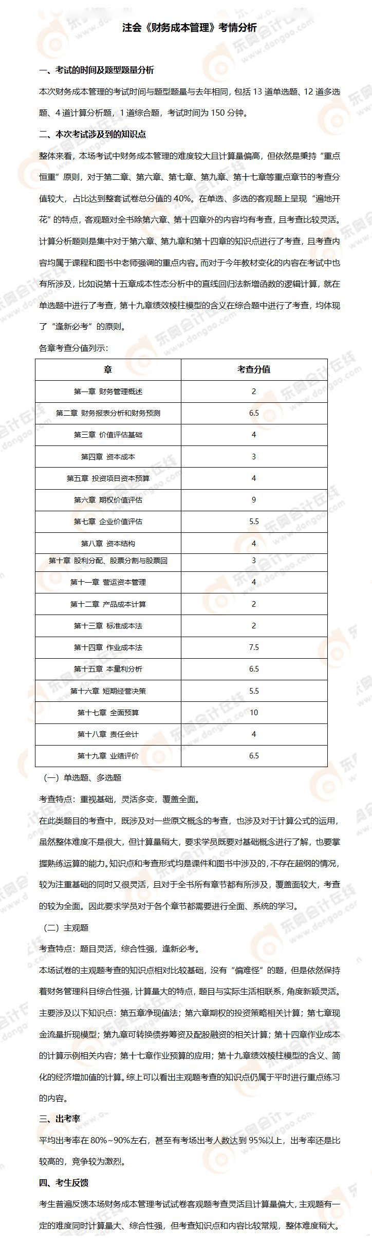 2024年注冊(cè)會(huì)計(jì)師考試財(cái)管科目已經(jīng)考完,考完試的考生們覺得今年的考試難度如何?今年又考了哪些知識(shí)點(diǎn)呢?東奧會(huì)計(jì)在線教研團(tuán)隊(duì)根據(jù)考生回憶反饋,為大家整理了2024年注會(huì)財(cái)管科目考情分析及考點(diǎn)總結(jié),一起來看看吧!