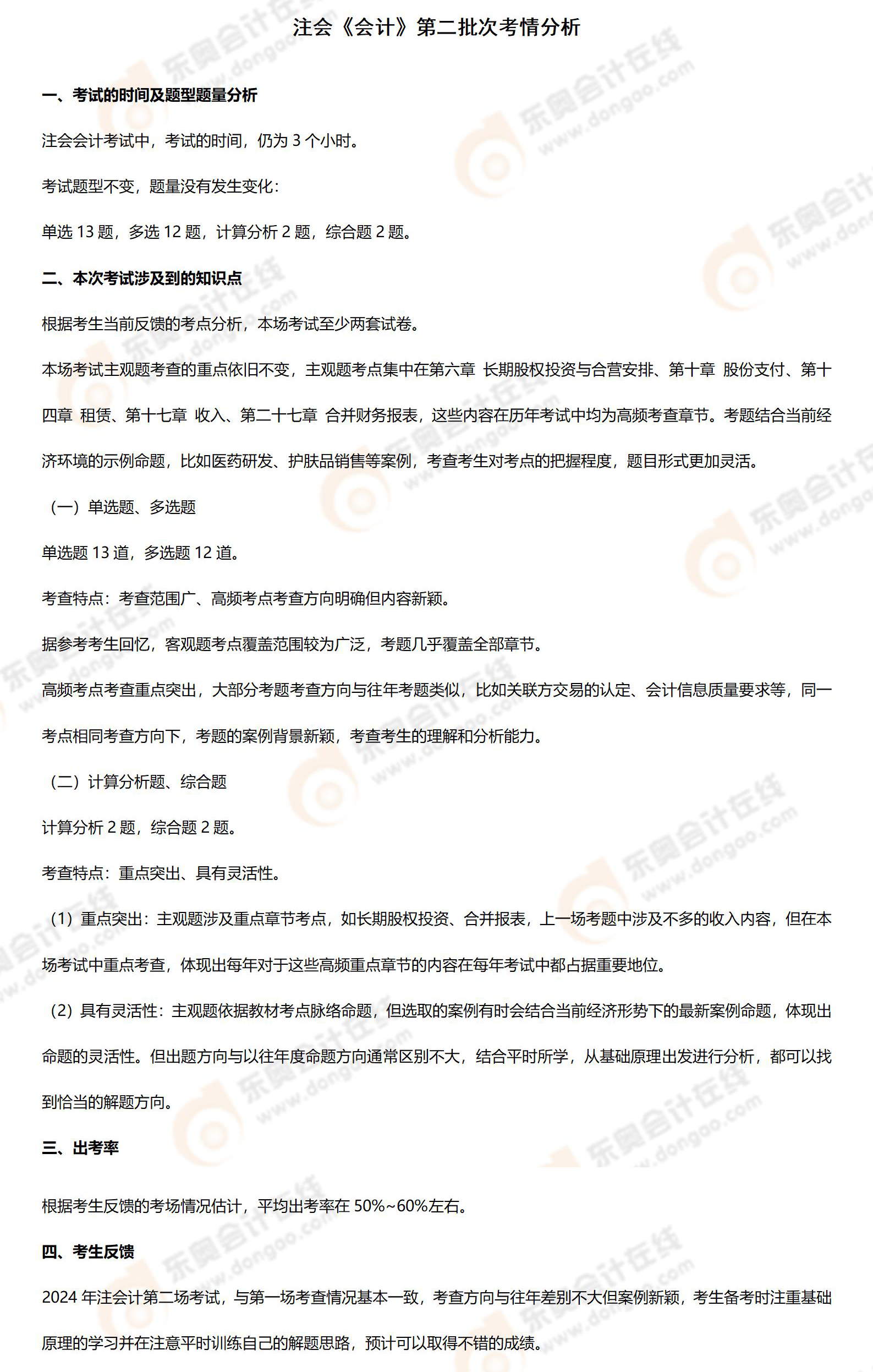 2024年注會會計(jì)第二批次考情分析及考點(diǎn)總結(jié)(考生回憶版)