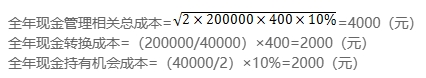 (2)計(jì)算最佳現(xiàn)金持有量下的全年現(xiàn)金相關(guān)總成本、全年現(xiàn)金轉(zhuǎn)換成本和全年現(xiàn)金持有機(jī)會成本。