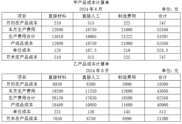 (3)甲產(chǎn)品完工產(chǎn)成品數(shù)量為100件。乙產(chǎn)品完工產(chǎn)成品數(shù)量為80件,在產(chǎn)品30件,在產(chǎn)品材料定額單位成本為255元,直接人工定額單位成本為225元,制造費(fèi)用定額單位成本為233元。