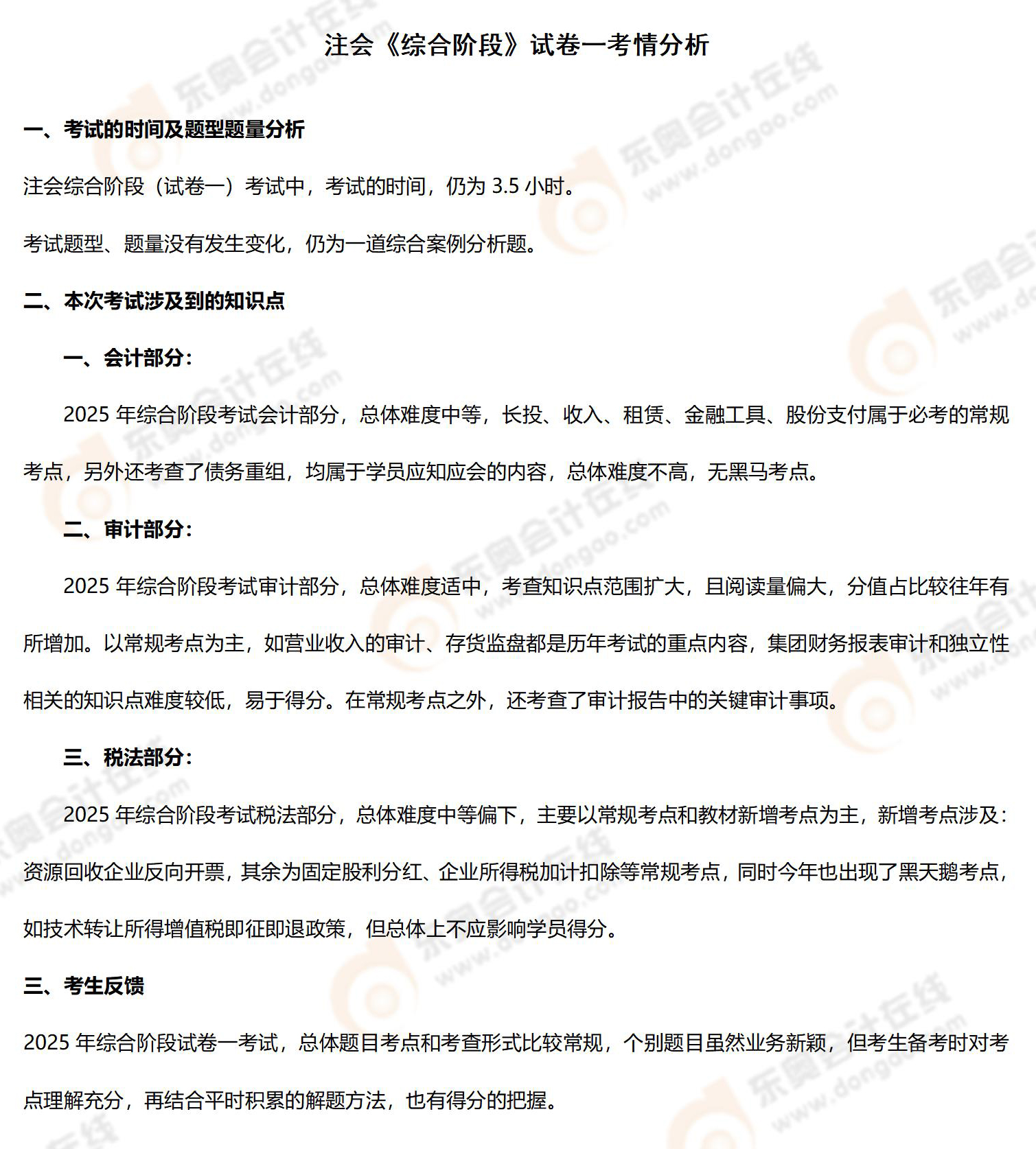 2025年注會綜合階段試卷一考情及考點總結(jié)(考生回憶版)