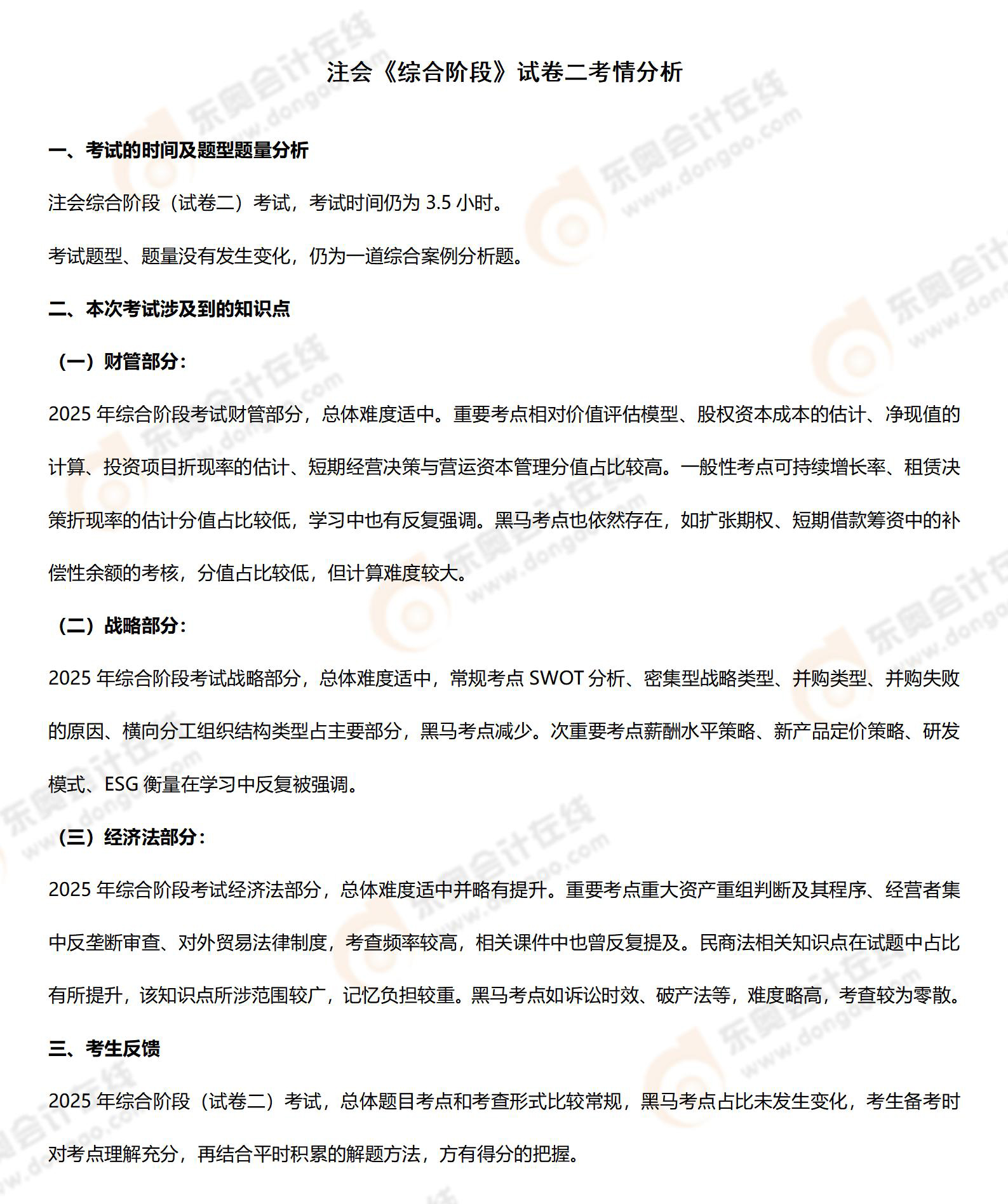 2025年注會(huì)綜合階段試卷二考情及考點(diǎn)總結(jié)(考生回憶版)