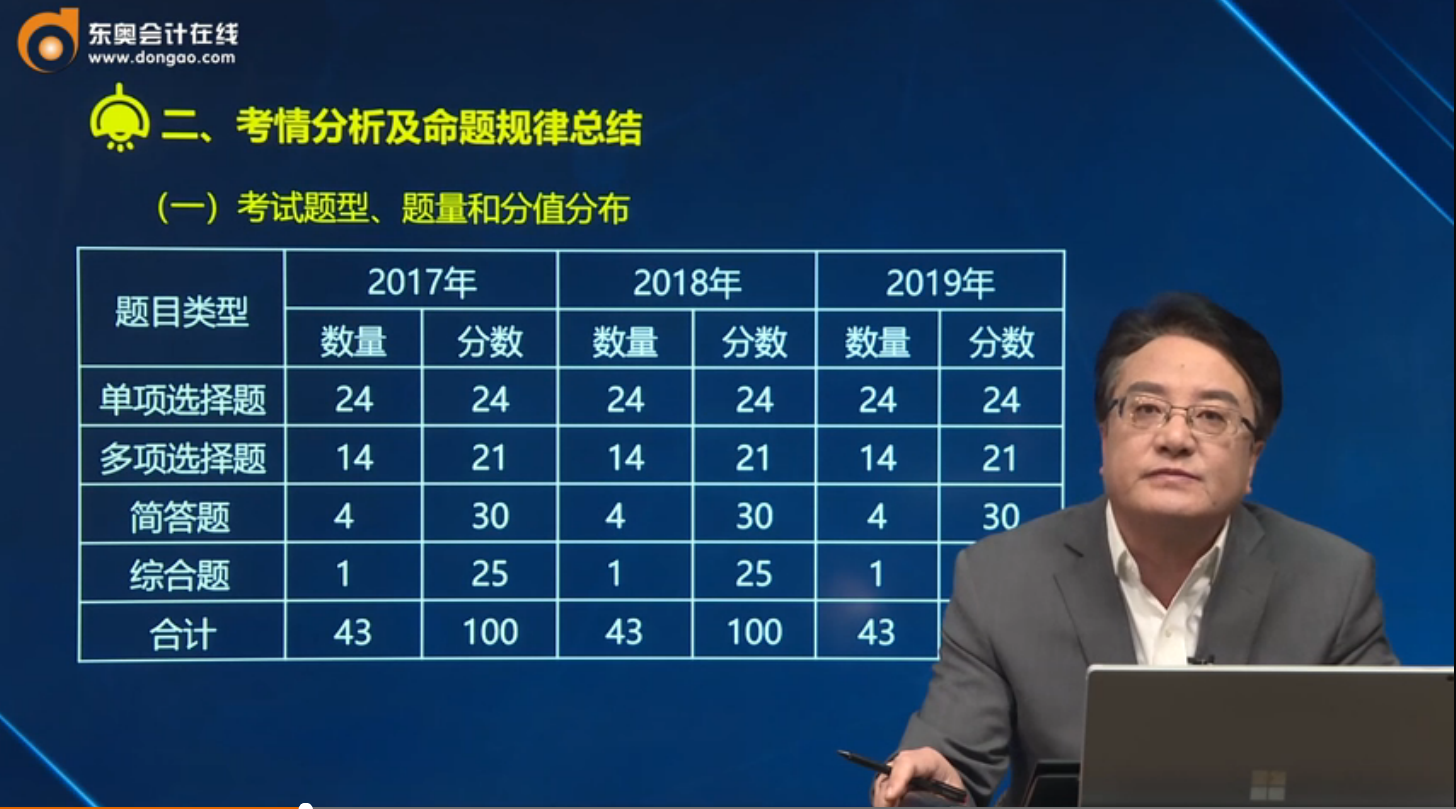 客觀題分為單項(xiàng)選擇題和多項(xiàng)選擇題,單項(xiàng)選擇題共24道題,每題1分,共24分;多項(xiàng)選擇題共14道題,每題1.5分,共21分;這也就是說客觀題共計(jì)45分。簡答題共有4個小題,總分為30分。綜合題是一個大題,總分為25分,也就意味著主觀題的總分值為55分。近些年,這樣的分值分配比例是固定不變的。