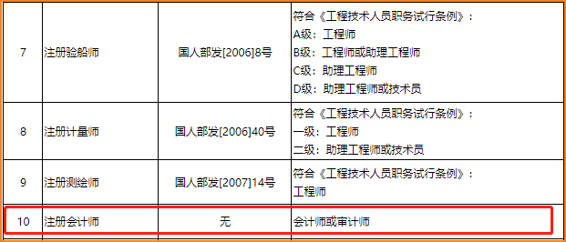 四川省人力資源和社會保障廳關(guān)于部分專業(yè)技術(shù)類職業(yè)資格可聘相應專業(yè)技術(shù)職務的通知中表明:通過國家職業(yè)資格考試,取得房地產(chǎn)估價師、造價工程師、注冊城鄉(xiāng)規(guī)劃師、執(zhí)業(yè)藥師、注冊安全工程師、注冊核安全工程師、注冊驗船師、注冊計量師、注冊測繪師、注冊會計師、注冊消防工程師、護士執(zhí)業(yè)資格、醫(yī)師執(zhí)業(yè)資格等13項準入類職業(yè)資格的人員,用人單位可根據(jù)相關(guān)任職條件和崗位空缺情況聘任相應的專業(yè)技術(shù)職務。其中注冊會計師可聘專業(yè)技術(shù)職務為會計師或?qū)徲嫀煛?/span>