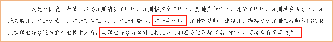 根據湖北省人力資源和社會保障廳發(fā)布的《關于建立部分專業(yè)技術類職業(yè)資格與職稱對應關系的通知》中的有關規(guī)定,注冊會計師與其職業(yè)資格直接對應相應系列和層級的職稱,兩者享有同等效力。