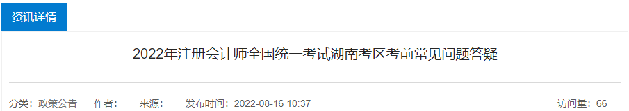 2022年注冊(cè)會(huì)計(jì)師全國(guó)統(tǒng)一考試湖南考區(qū)考前常見問題答疑