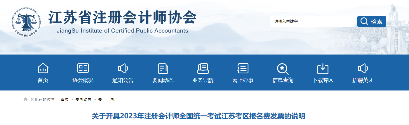 江蘇考區(qū):2023年注會(huì)考試報(bào)名費(fèi)發(fā)票開(kāi)具說(shuō)明