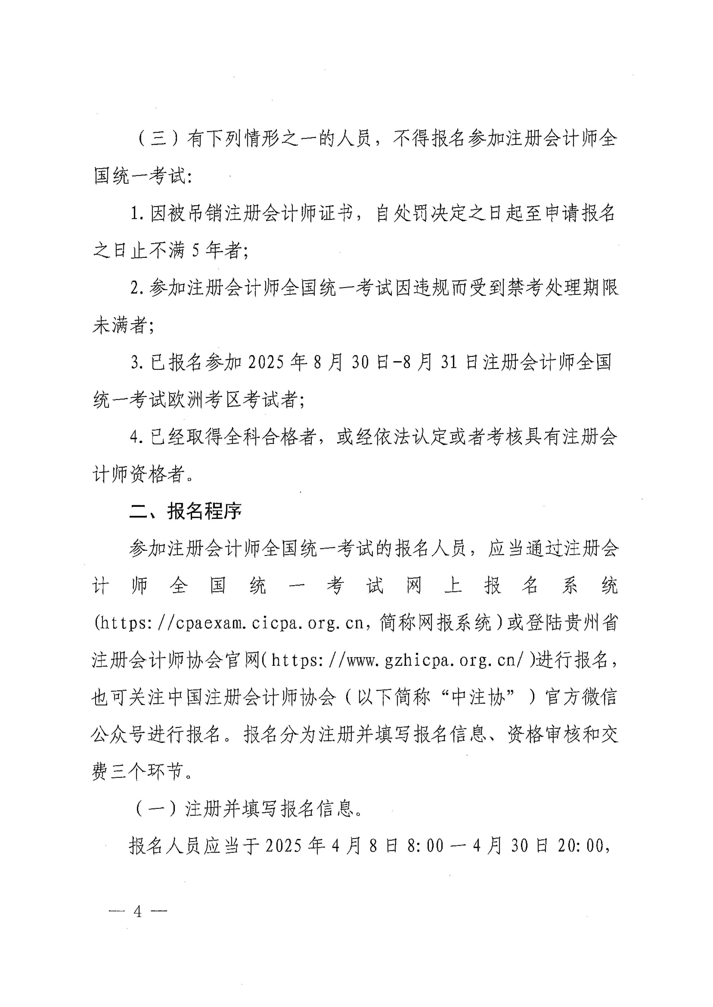 貴州省2025年注冊會計(jì)師全國統(tǒng)一考試報(bào)名簡章
