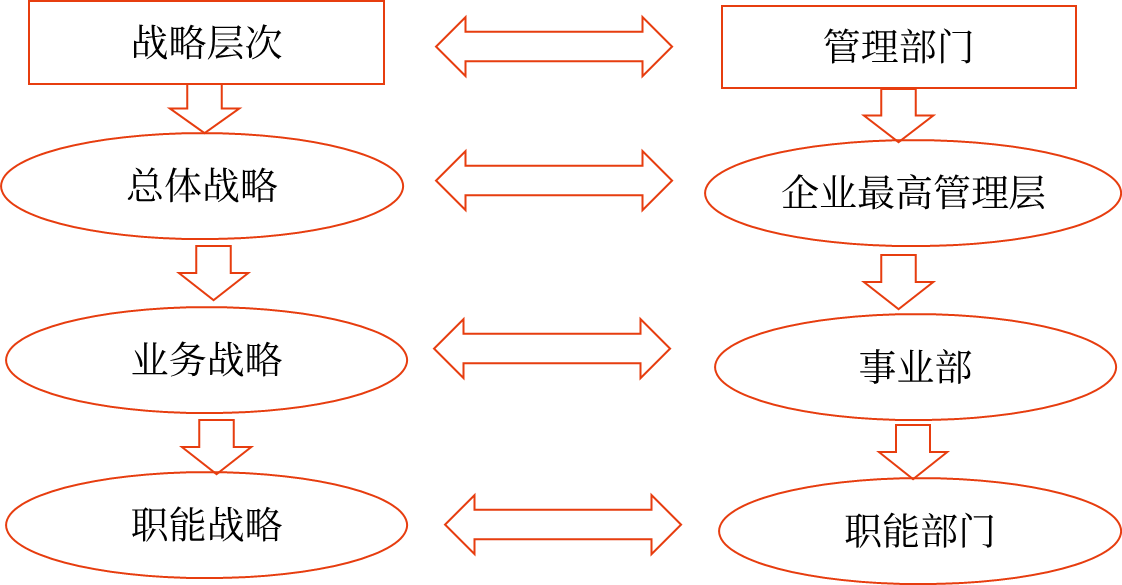 企業(yè)戰(zhàn)略一般可分為三個層次,分別是企業(yè)總體戰(zhàn)略、企業(yè)業(yè)務(wù)戰(zhàn)略和企業(yè)職能戰(zhàn)略。