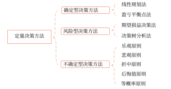 是指在穩(wěn)定可控條件下進(jìn)行決策,只要滿足數(shù)學(xué)模型的前提條件,模型就能給出特定的結(jié)果。包括:線性規(guī)劃法和盈虧平衡點(diǎn)法。