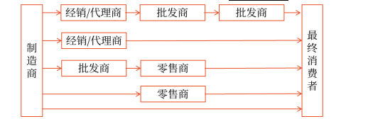 鑒于工業(yè)品市場的特點,工業(yè)品分銷渠道以具有服務功能的短渠道為主。工業(yè)品分銷渠道模式如下圖。